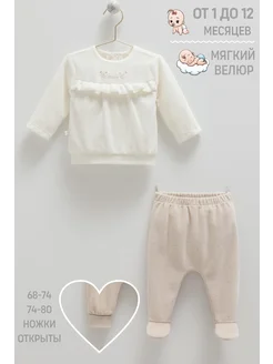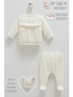 Велюровый костюм тройка для новорожденных нарядный комплект