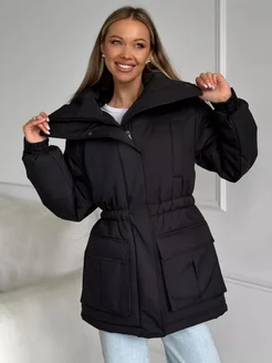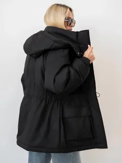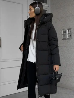 Пуховик зимний длинный оверсайз с капюшоном