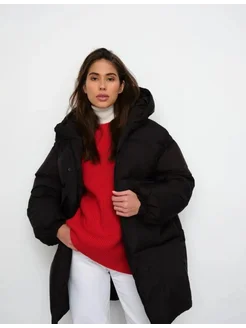 Пуховик зимний длинный с капюшоном оверсайз