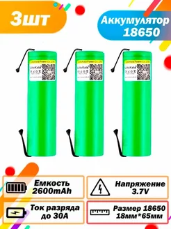 Аккумулятор 18650 с выводами VTC5A 2600mAh 3.7В, 3 шт