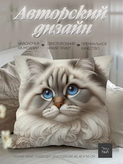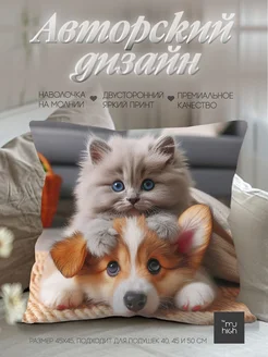 Декоративная наволочка для подушки 45х45 кот собака друзья