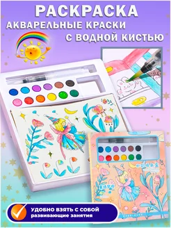 раскраска с водяной кисточкой и акварельными красками