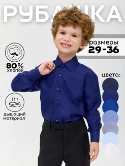 Синяя рубашка для мальчика с длинным рукавом