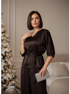 Костюм с брюками палаццо шелковый