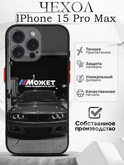 Чехол на iPhone 15 Pro Max черный с принтом BMW