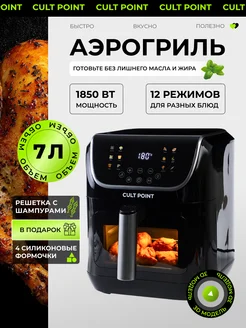 Аэрогриль электрический для дома с решеткой и шампурами 7л