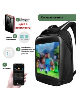 Рюкзак с LED экраном и Power Bank. черный