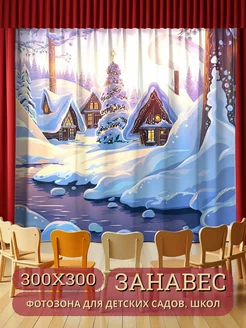 Новогодняя фотозона для оформления зала фотофон 600х300 см