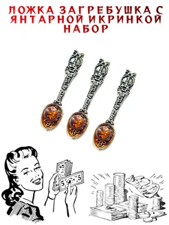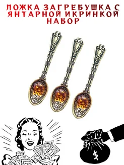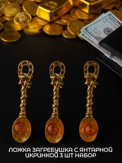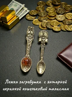 Ложка загребушка кошельковый талисман оберег с янтарем