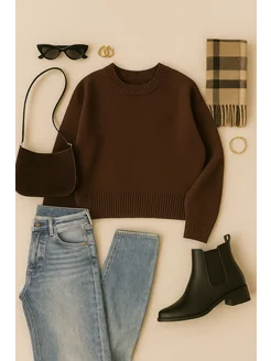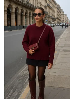 Свитер оверсайз вязаный укороченный теплый