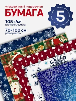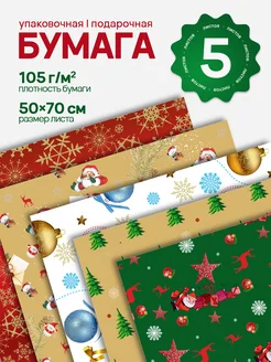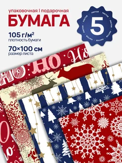 Бумага упаковочная новогодняя, 70х100 см, набор, 5 рулона