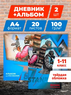Дневник школьный + альбом для рисования 20л, Standoff набор