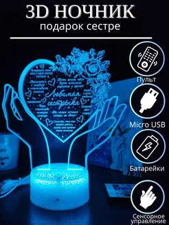 Светильник ночник сердце подарок девушке Я всегда рядом