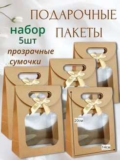Пакеты подарочные маленькие крафт, 5 штук (14*20*7)
