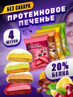 Протеиновое печенье без сахара. Ассорти 4 вкуса 50г 4шт