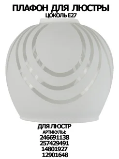 Плафон стеклянный запасной для люстры Е27, 1 шт