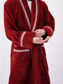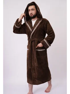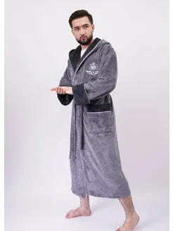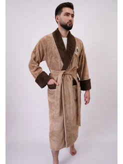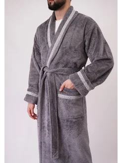 Халат мужской банный велюр-махровый, бамбук + хлопок