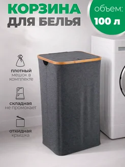 Корзина для белья с крышкой, складная серая