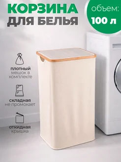 Корзина для белья с крышкой, складная бежевая