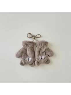 Варежки детские зимние плюшевые пушистые на веревке