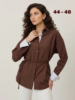 Офисная рубашка в полоску с поясом