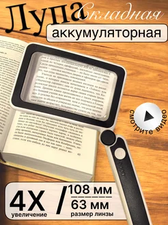 Лупа с подсветкой прямоугольная на аккумуляторе