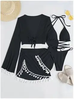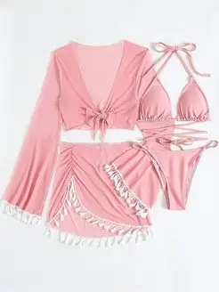 Купальник раздельный с высокой талией 4 в 1 с юбкой