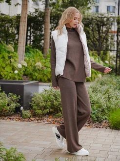 Костюм вязаный трикотажный теплый с брюками оверсайз