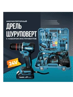 Шуруповерт - дрель аккумуляторный с набором инструментов