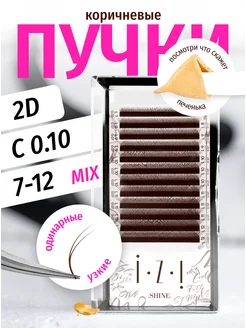 Ресницы темно-коричневые IZI пучки 2D, микс C 0.10 7-12mm