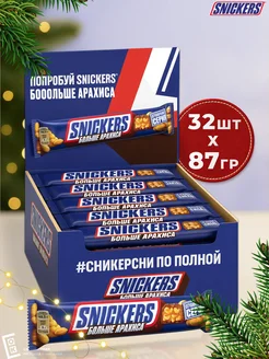 Шоколадный батончик Сникерс Больше Арахиса 87гр, 32шт уп