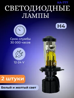 Лампы автомобильные светодиодные линзи H4 белый желтый