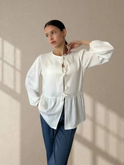 Блузка рубашка атласная на завязках с баской