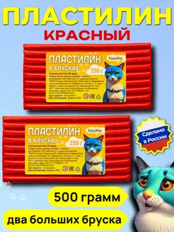 Пластилин красный Классический, брусок 250г, 2 штуки