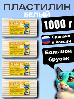 Пластилин белый Классический, брусок 250г, 4 штуки