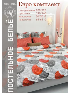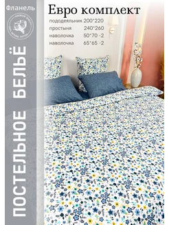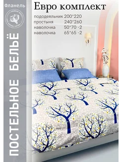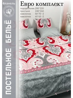 Постельное белье 2 спальное-Евро фланель- хлопок, 4 нав