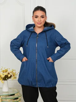 Ветровка джинсовая с капюшоном больших размеров
