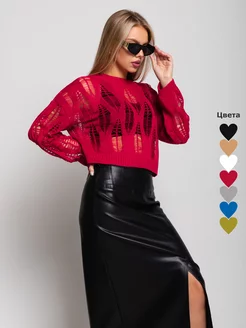 Укороченная кофта лонгслив в сетку