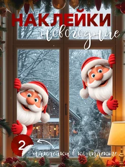 Наклейки новогодние для дома на окна и стену 2026 дед мороз
