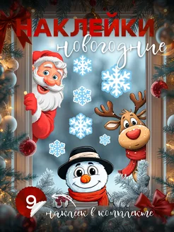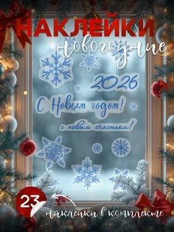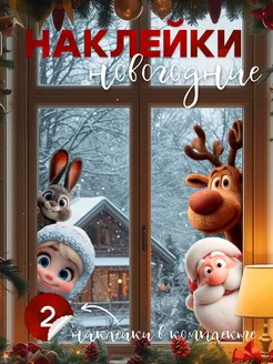 Наклейки новогодние для дома на окна и стену 2026