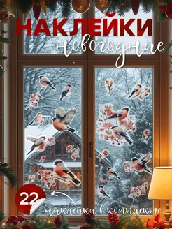 Наклейки новогодние для дома на окна и стену 2026 снегири