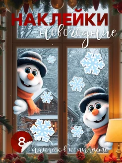 Наклейки новогодние для дома на холодильник 2026 снеговик