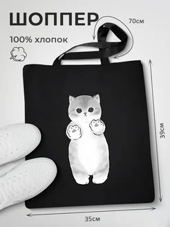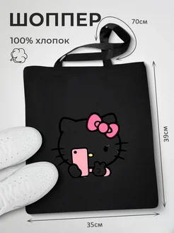 Сумка шоппер черная с принтом Hello Kitty