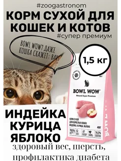 Корм сухой с индейкой и яблоком для взрослых кошек 1,5 кг