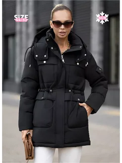 Зимняя стеганая куртка с капюшоном оверсайз