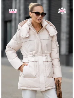Куртка зимняя с капюшоном оверсайз зефирка