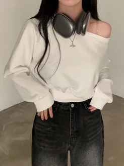 Лонгслив оверсайз y2k белый свитшот на одно плечо