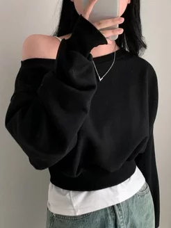 Лонгслив y2k черный свитшот на одно плечо