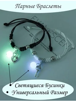 Парные браслеты для влюбленных пар со светящейся бусинкой