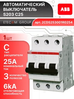Автоматический выключатель 3P (3П) 25А тип C 6кА S203 1шт